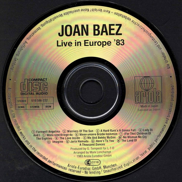 Компакт-диск Joan Baez / Live In Europe '83 (1CD)