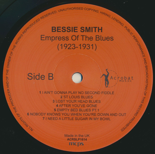 A1 - Down Hearted Blues A2 - Gulf Coast Blues A3 - Aggravatin' Papa A4 - Baby Won't You Please Come Home A5 - 'Tain't Nobody's Biz-Ness If I Do A6 - Careless Love Blues B1 - I Ain't Gonna Play No Second Fiddle B2 - St. Louis Blues B3 - Lost Your Head Blues B4 - After You've Gone B5 - Empty Bed Blues Pt. 1 B6 - Nobody Knows You When You're Down And Out B7 - I Need A Little Sugar In My BowlХарактеристики