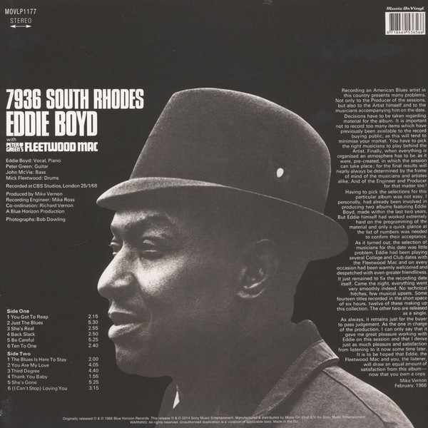 Виниловая пластинка BOYD EDIIE /P.GREEN'S FLEETWOOD / 7936 SOUTH RHODES (MUSIC ON VINYL) (LP)