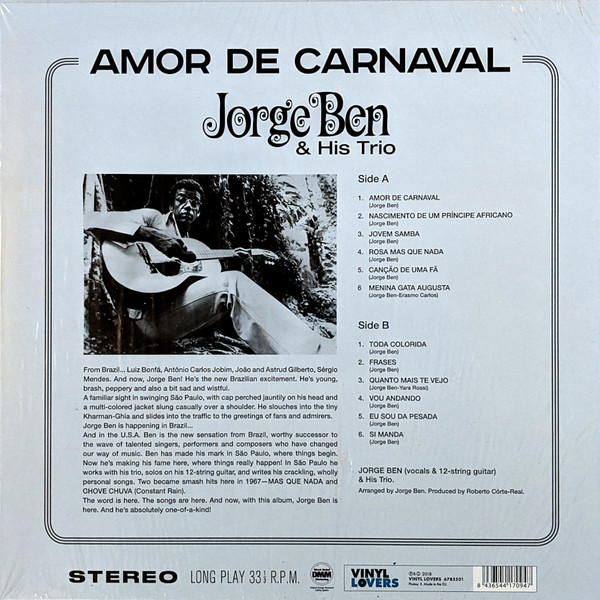 Виниловая пластинка JORGE BEN & HIS TRIO / AMOR DE CARNAVAL - LTD EDT (1LP)