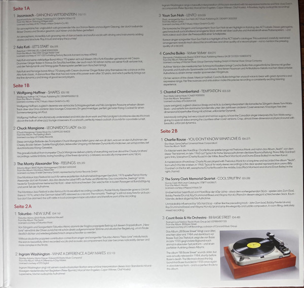 A1 - Dancing Wittgenstein - 611 A2 - Let's Start - 419 B1 - Shapes - 318 B2 - The Feeling's Back - 392 B3 - Feelings - 335 C1 - New June - 256 C2 - What A Difference A Day Makes - 190 C3 - Lento - 185 C4 - Volver Volver - 261 C5 - Temptation - 212 D1 - You Don't Know What Love Is - 387 D2 - Cool Struttin' - 328 D3 - 88 Basie Street - 288Характеристики
