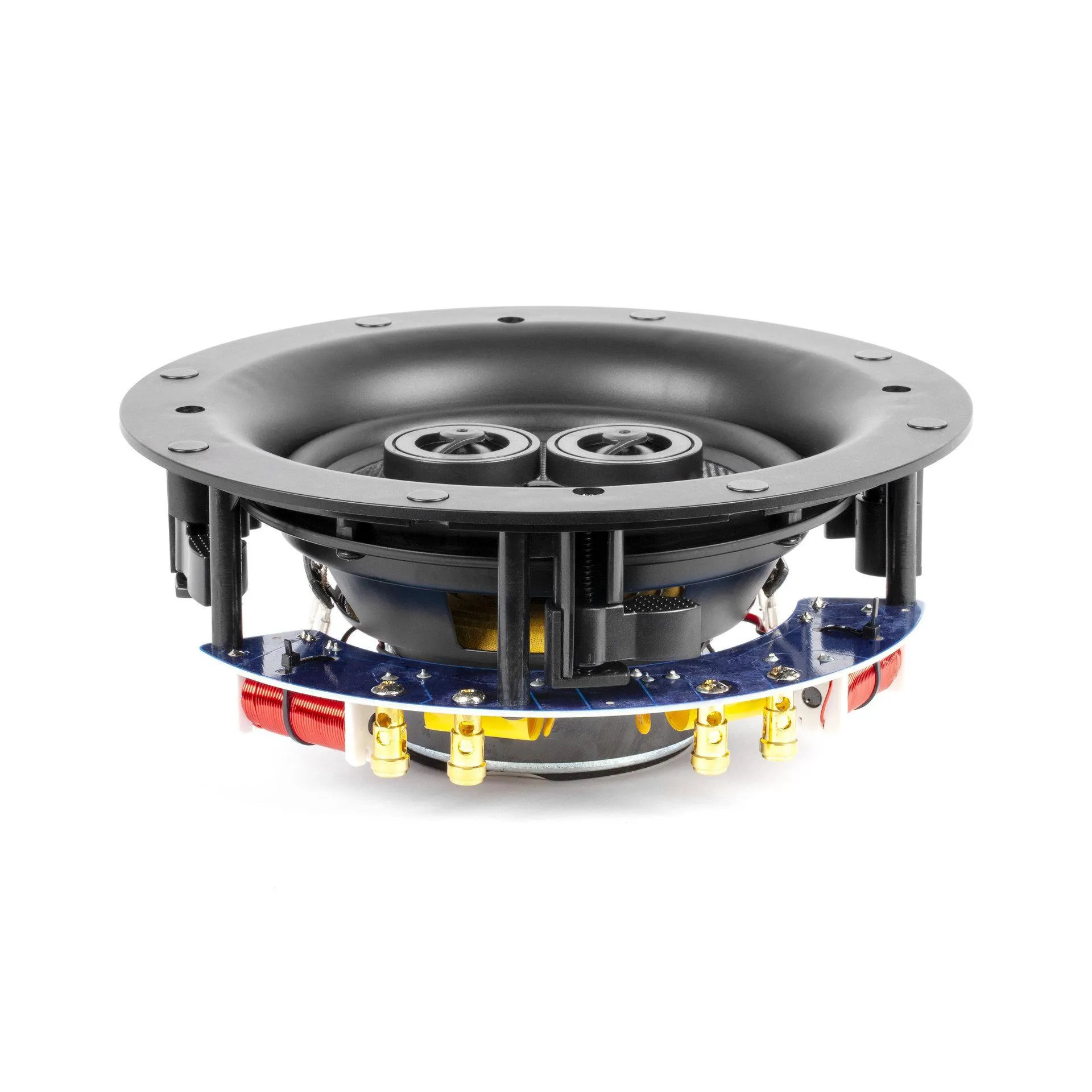 Корпус акустических систем XC62RS сконструирован для установки в стену или в потолок и имеет установочный размер диаметром 210 мм. Три динамика – два высокочастотных 0,75-дюймовых с шелковым куполом и низкочастотный 6,5-дюймовый из плетеного стекловолокна – обеспечивают воспроизведение в диапазоне частот от 65 Гц до 20 кГц при рекомендованной мощности усилителя от 20 Вт до 50 Вт (8 Ом). Акустические системы комплектуются металлическими защитными решетками белого цвета на магнитных креплениях.